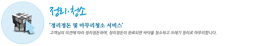 ¡¤ ¸ðµç ÀÌ»ñÁüÀÇ ¹èÄ¡ ¹× Á¤¸®Á¤µ· ¼ºñ½º ¡¤ ¸ÕÁöÁ¦°Å ¹× ¹æ, °Å½Ç¹Ù´Ú ¸¶¹«¸® û¼Ò